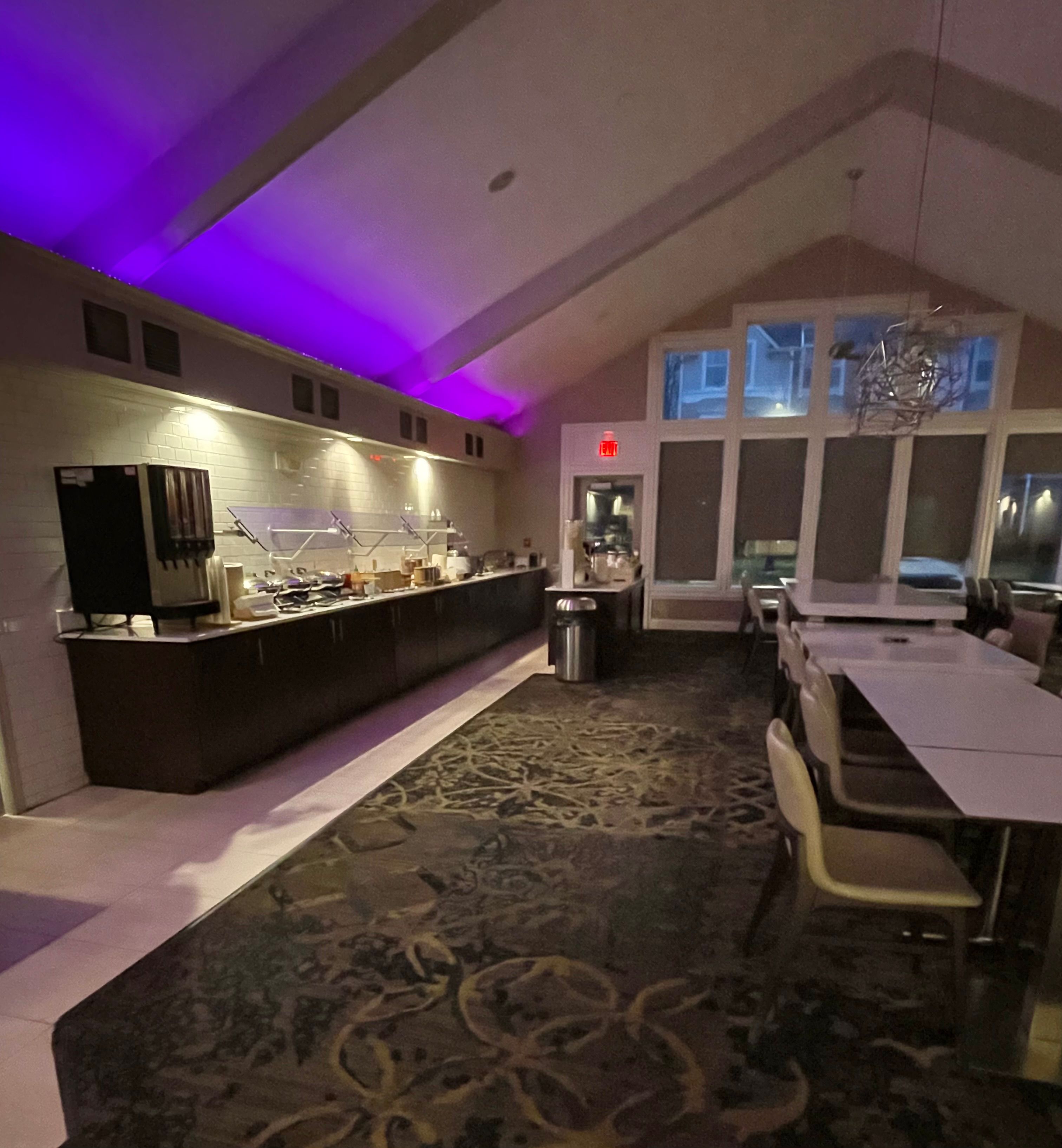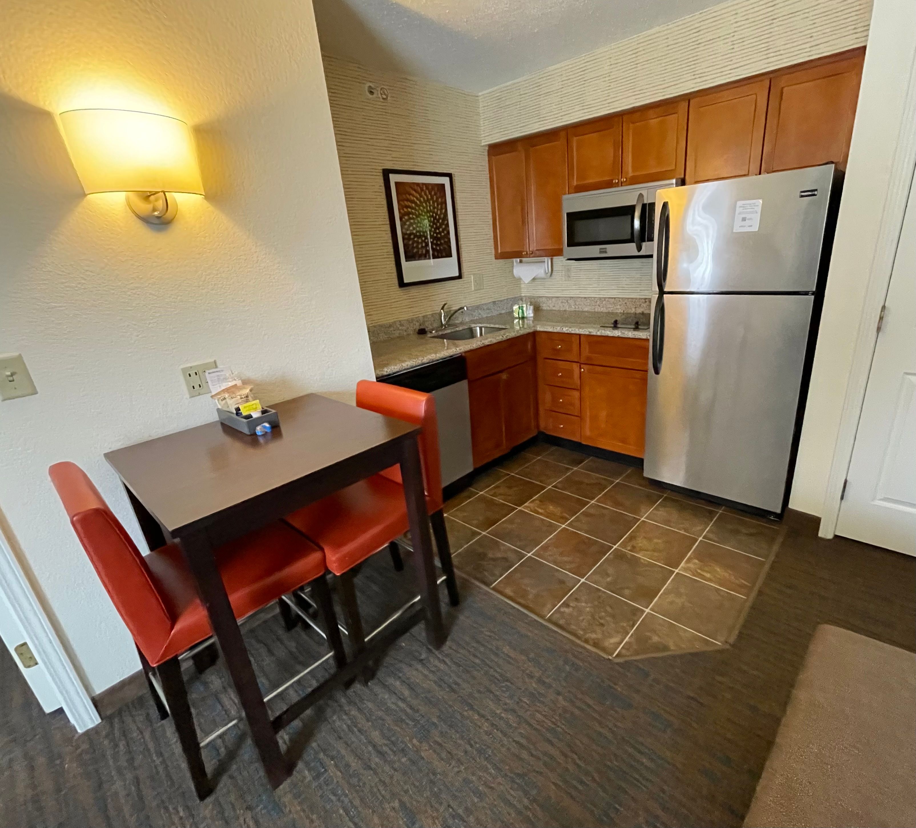 Breakfast is included and follows the usual Residence Inn format: eggs, turkey sausage, bagels, muffins, fruit, waffle station.