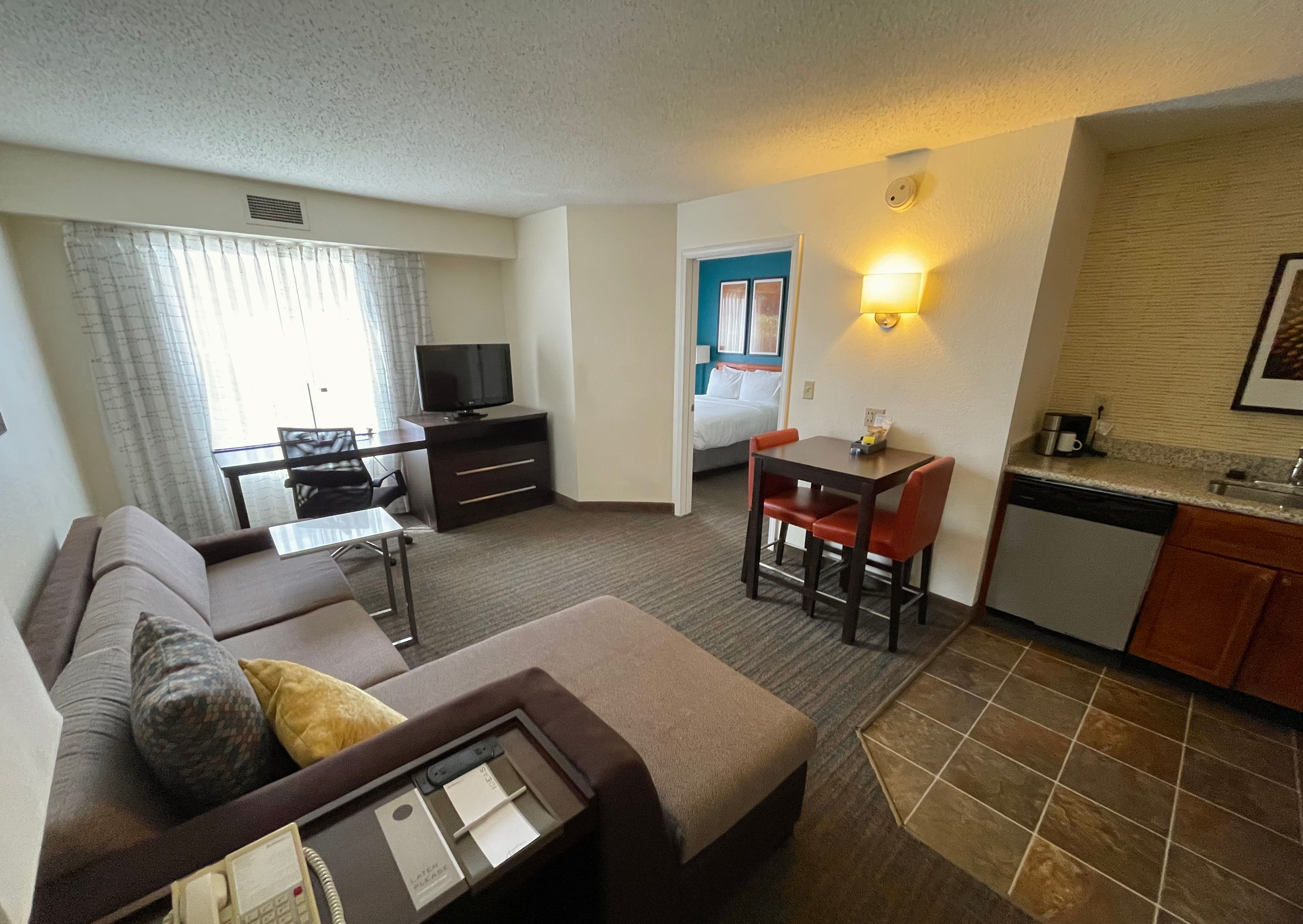 The room was a one-bedroom suite with a queen bed and a sofa bed in the living area.