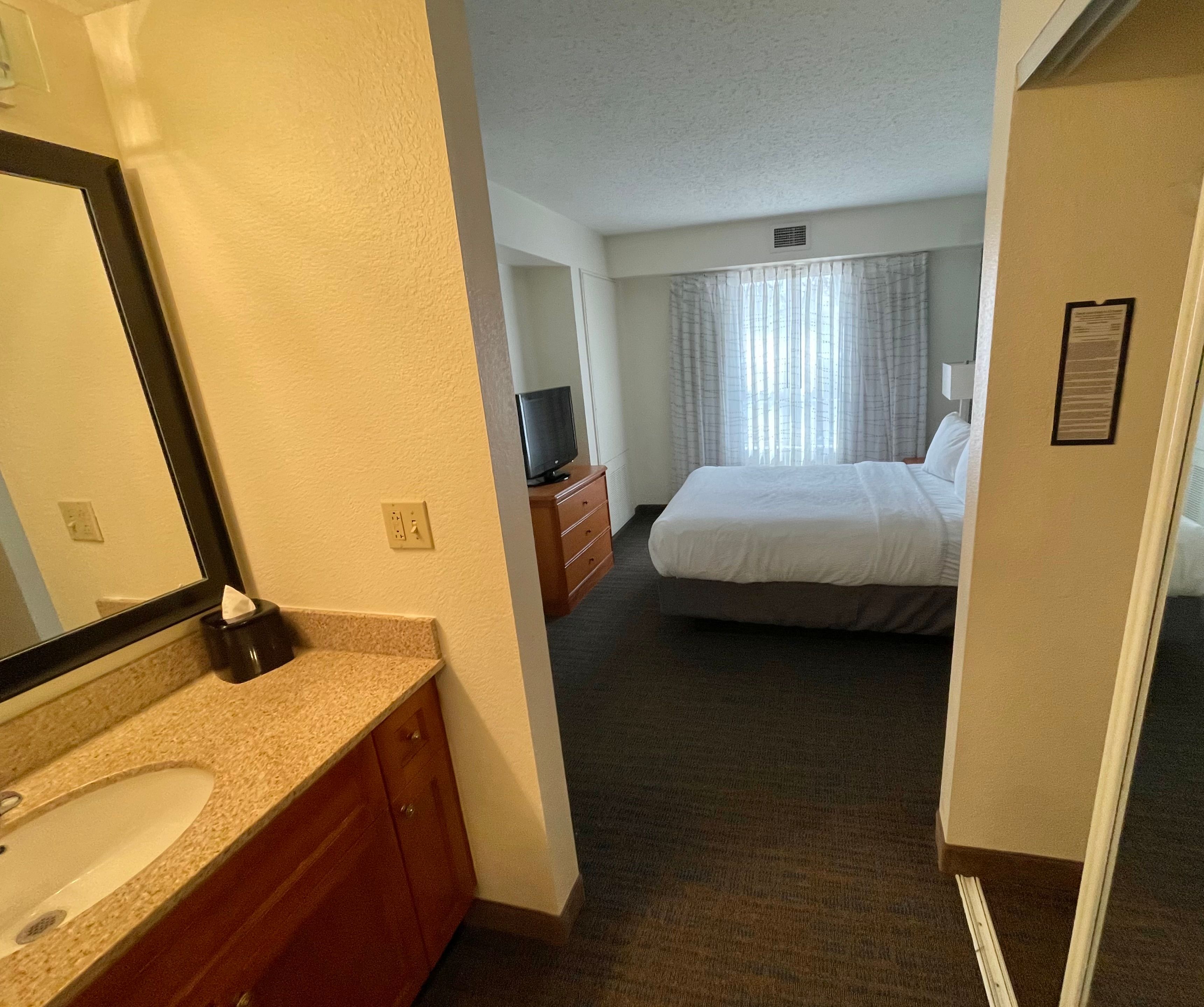 Sink and entry area leading into the bedroom