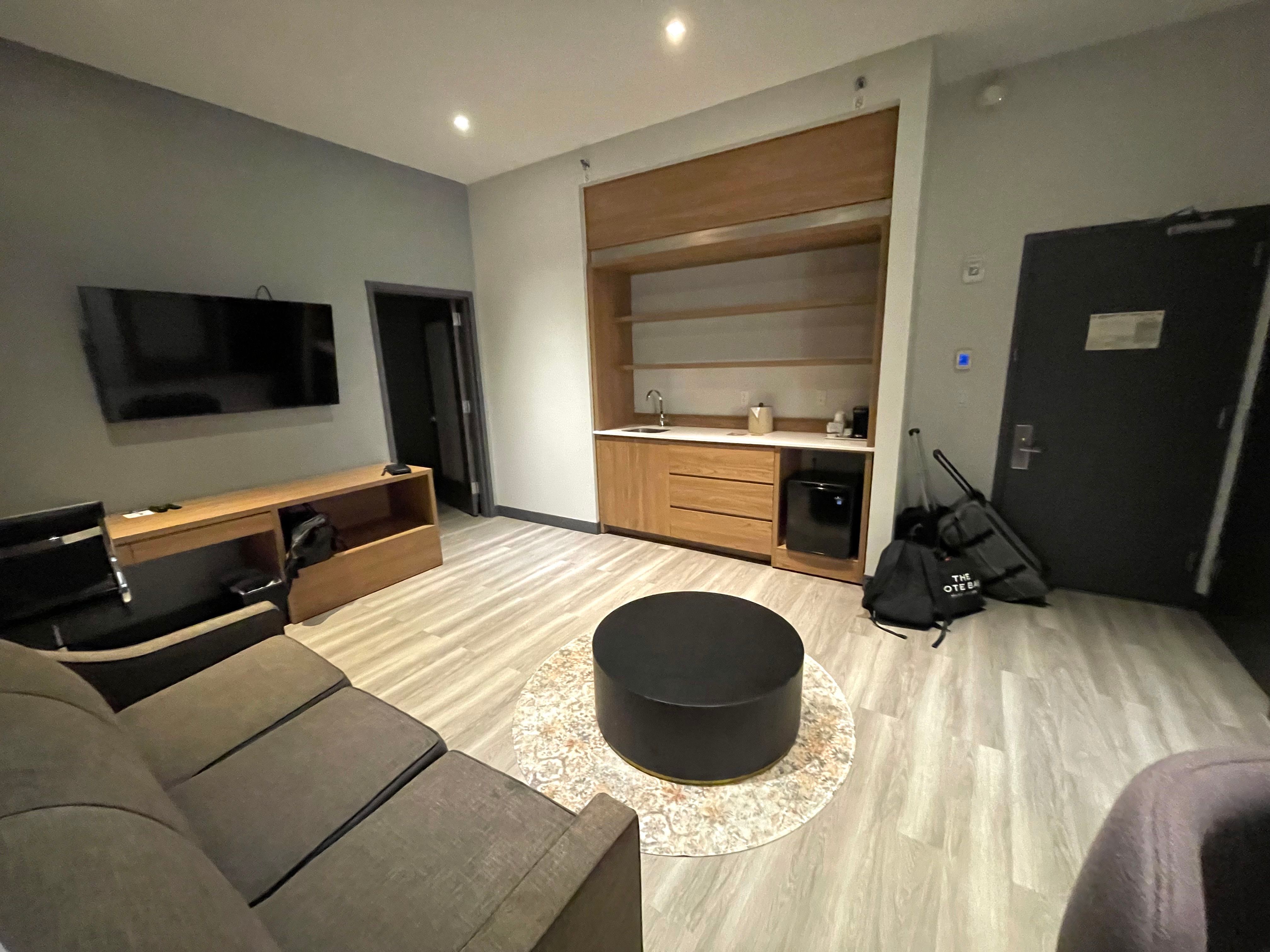 Instead of a typical compact New York hotel room, we had a functional two-zone space. Enough room to spread out, sit properly, and not feel like everything was happening in one place.