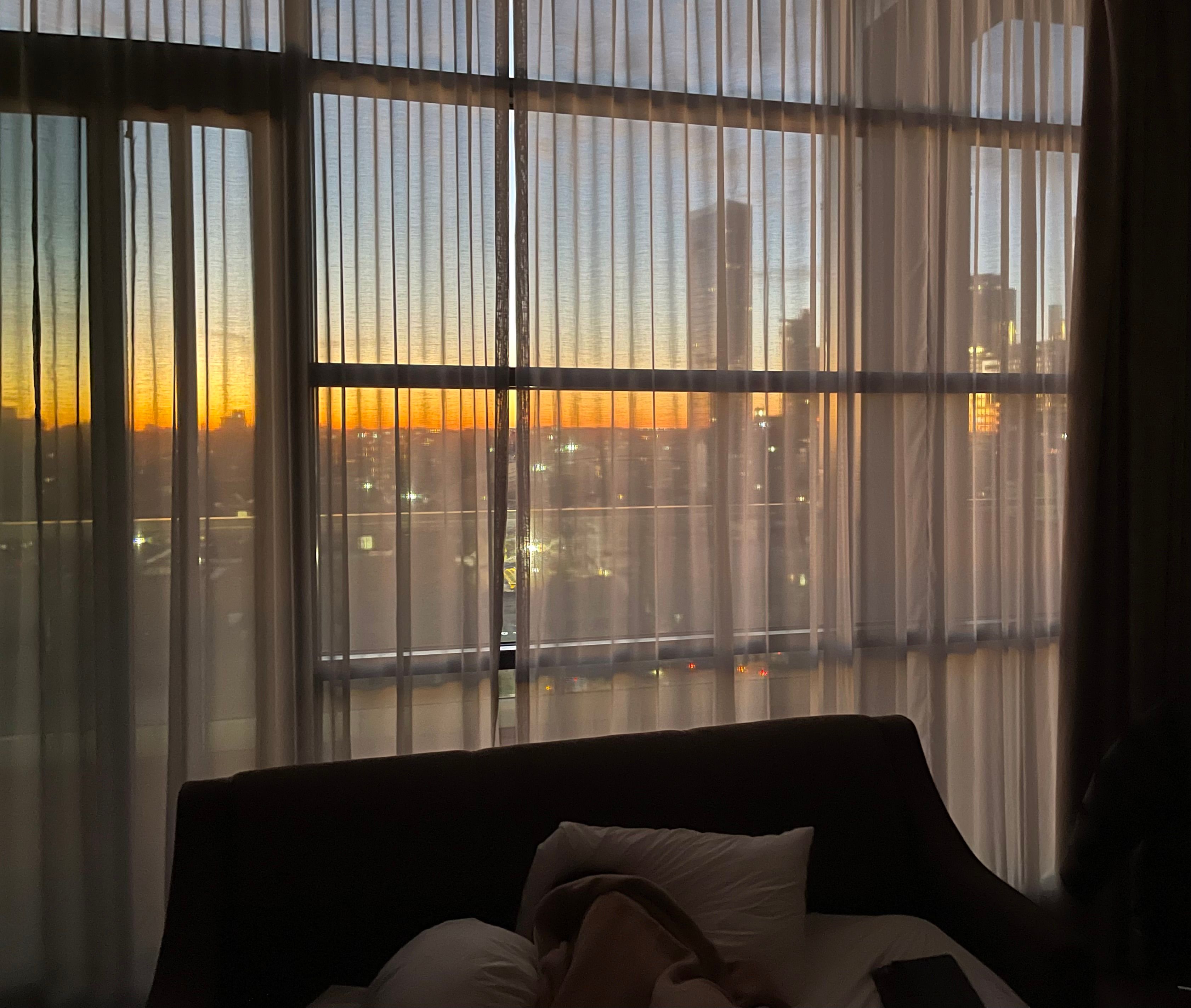 At night, the skyline gives you enough of Manhattan to feel connected to it, even if you’re not in it. In the morning, the light coming through the curtains was one of the better moments of the stay.