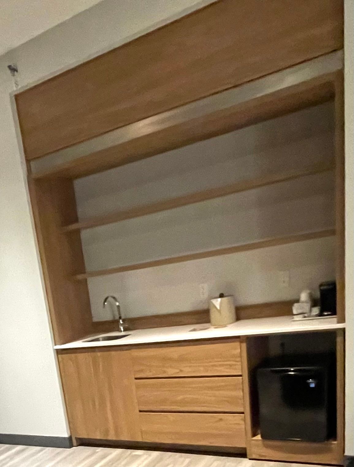 One slightly odd feature was the kitchen area. A large amount of bench space and shelving, clearly built to support a full kitchenette, but fitted out with very little. A sink, kettle, and fridge, and not much else. It didn’t matter here, but it stood out.